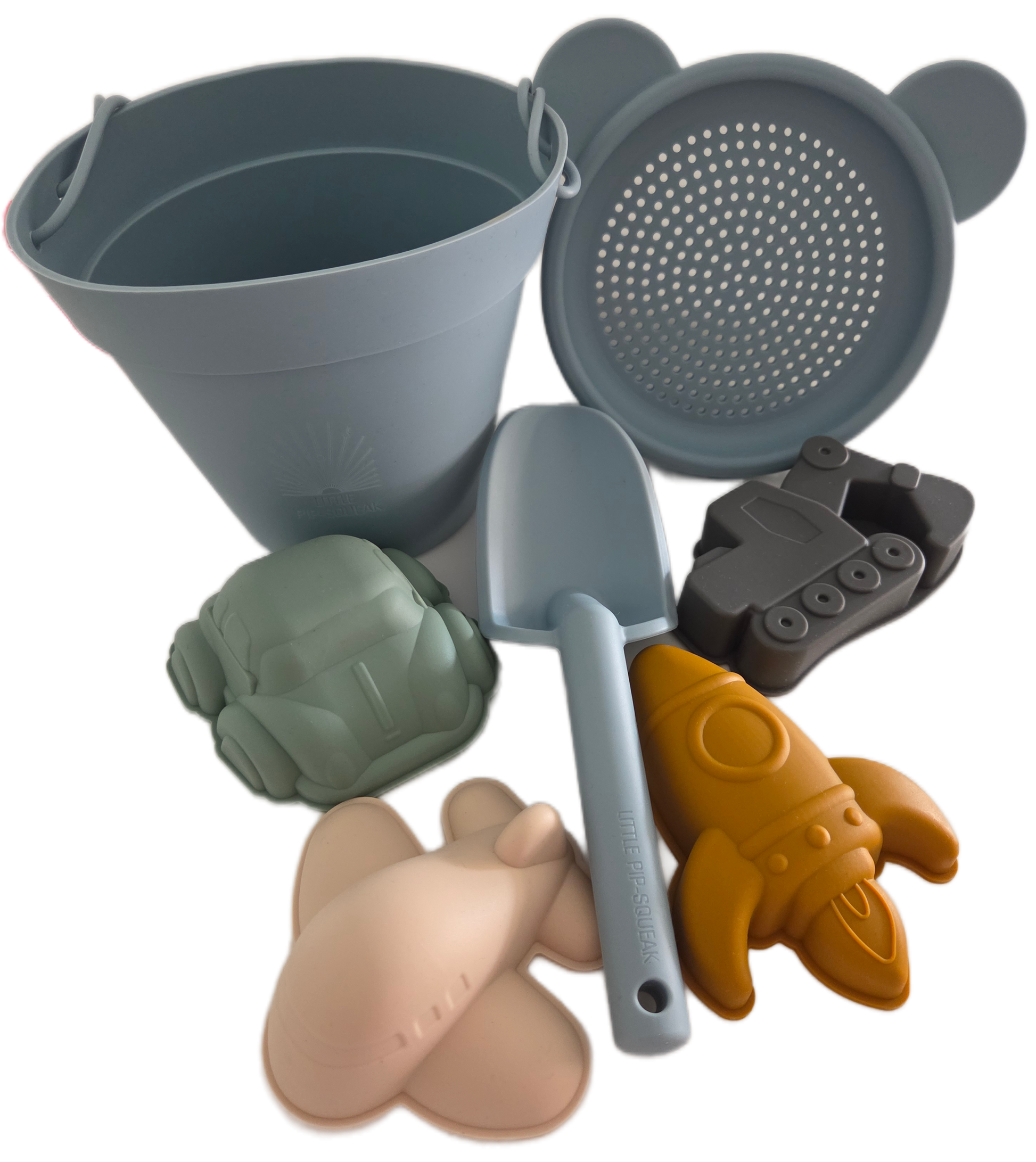 Each set comes with a bucket, spade, sand sieve, four moulds and a super soft and handy net bag to carry all the goodies.